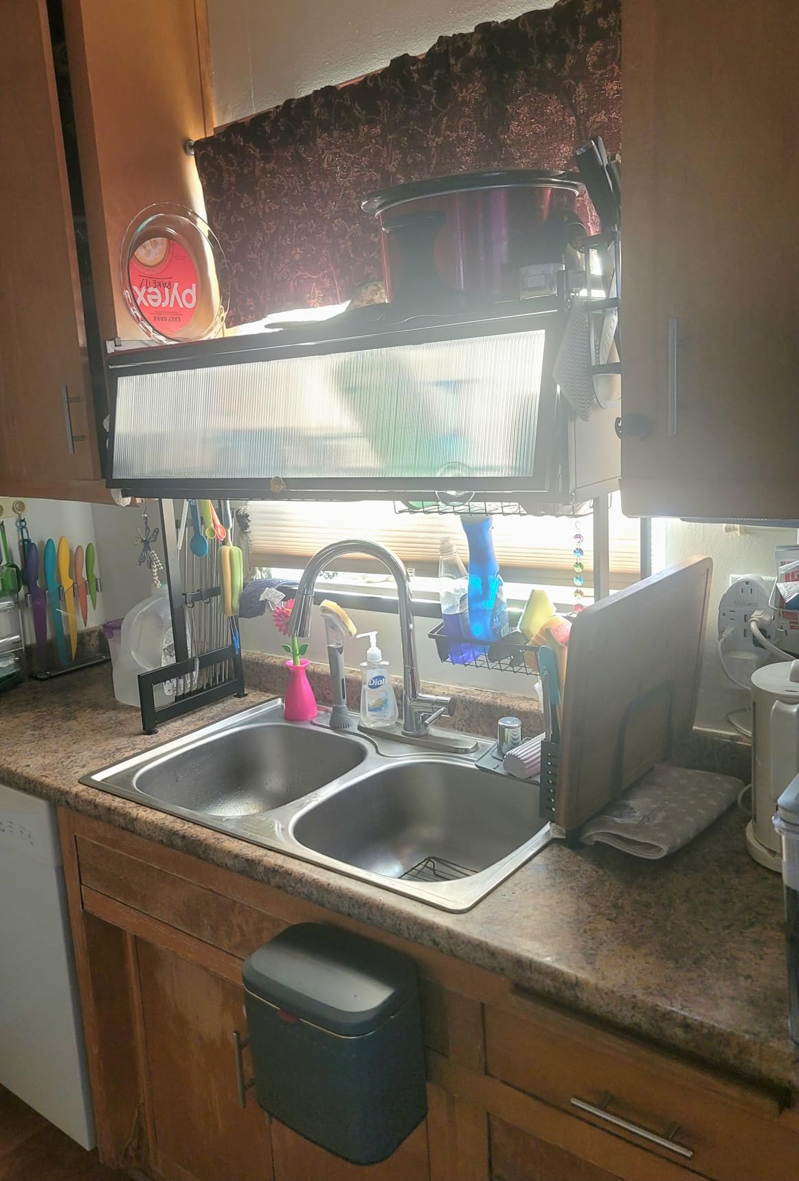 "No tenía espacio en la encimera, pero con este escurridor sobre el fregadero aproveché cada centímetro."